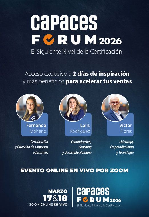 Como miembro del CAPACES Forum 2026 tendrás derecho a unirte sin costo a la comunidad VIP para hacer networking y asistir a los eventos especiales de este año, asi como un descuento del 15% en cualquiera de estas certificaciones con valor oficial: EC0217.01 - EC0301 y EC0366